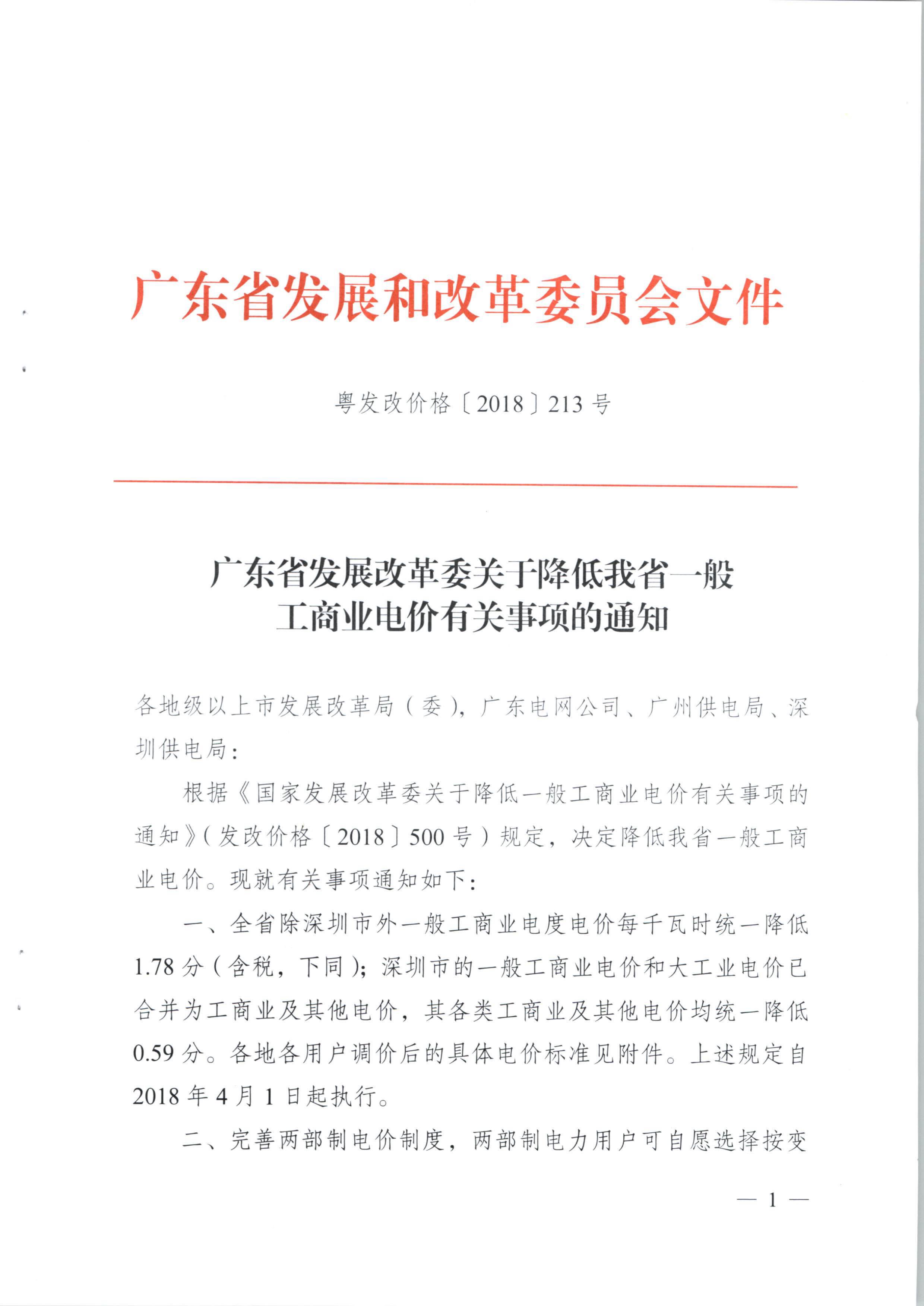 广东省发展改革委关于降低我省一般工商业电价有关事项的通知