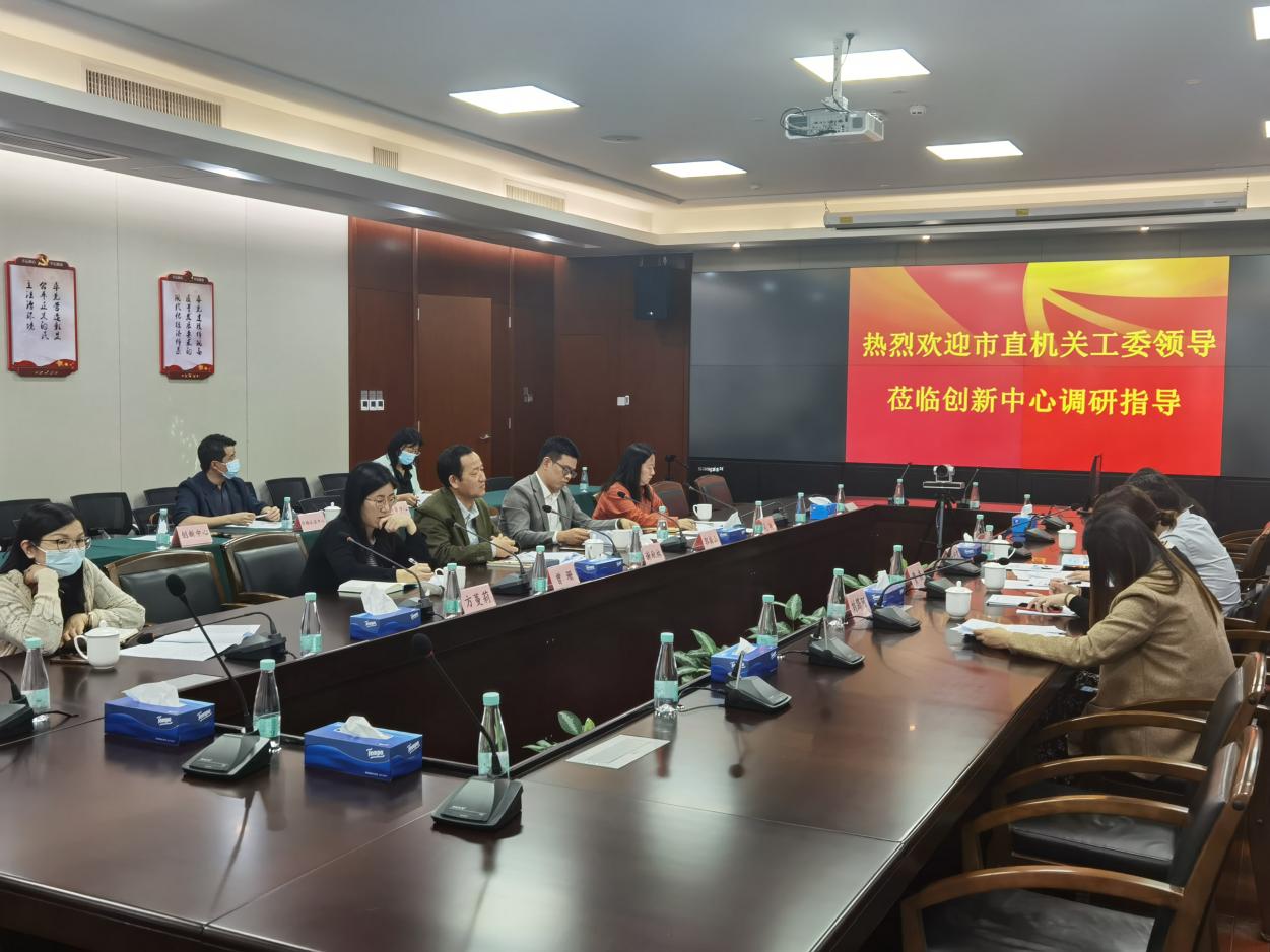 2021年3月26日,市直机关团工委书记汤抒睿同志率队至中心开展机关党建工作调研,并与中心党委副书记、副主任郭振山同志,市发展改革委机关党委(人事处)三级调研员谢秋林同志开展座谈交流。
