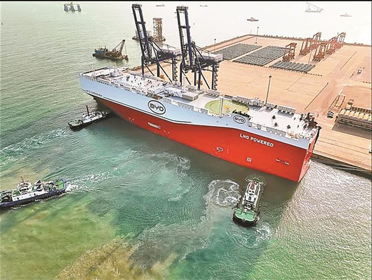 深圳新闻网2026年1月28日讯(深圳报业集团记者 潘玲霄) 1月22日清晨,深汕湾畔薄雾未散,深圳港集团旗下小漠港区已是一派热火朝天。随着船长一声指令,总长219.9米的比亚迪“深圳号”滚装船汽笛长鸣,船身缓缓驶离泊位,甲板上6000余辆国产新能源汽车排列如阵,在晨光中勾勒出“中国智造”的醒目轮廓。这是小漠港区2026年首批“广货”出海,有力支撑“广货行天下”春季行动在高端制造业领域的再突破,千辆“深圳造”新能源车将直抵英国、德国、比利时等欧洲市场。