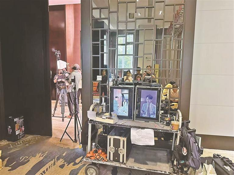 微短剧《股神》在深圳坪山影视城实景拍摄现场。