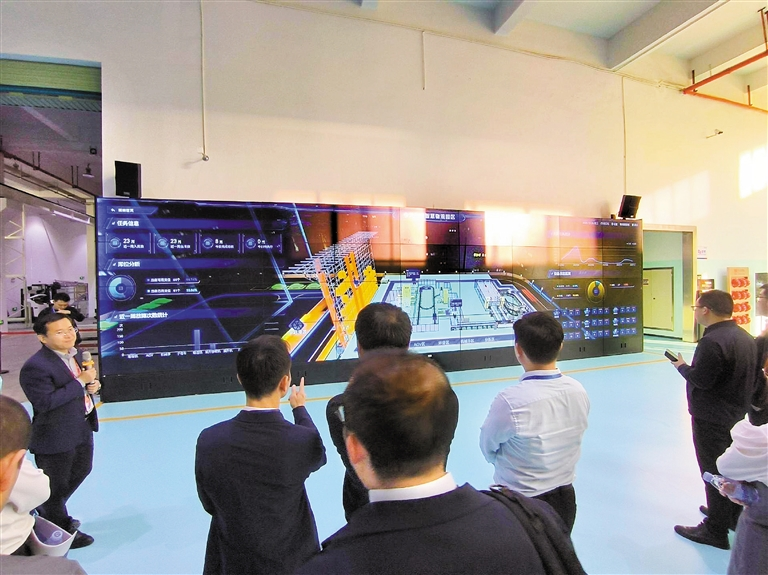 ▲大屏展示智慧物流作业模式。 深圳晚报记者 苏靖驹摄