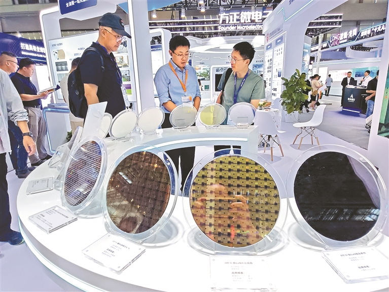 深圳集聚了众多芯片类企业和新型研发机构。图为2025湾区半导体产业生态博览会场景。