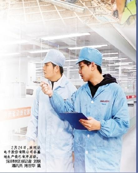 2月24日,欣旺达电子股份有限公司各基地生产线已有序启动。 深圳特区报记者 刘钢通讯员 周世华 摄