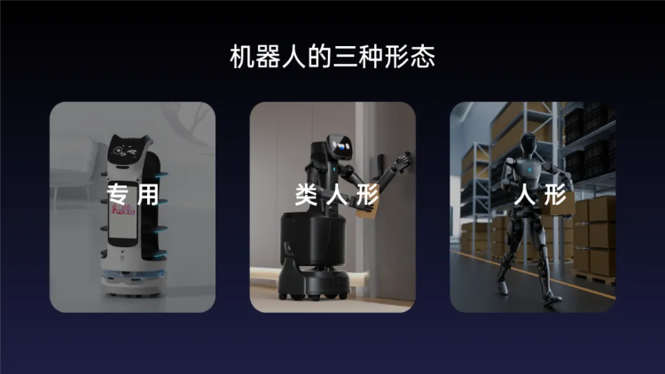 行业下半场到来的一个另一重要标志是多技术栈驱动下的多形态具身智能。2024年5月,张涛在行业内提出,专用、类人形、人形等多种形态将共同构成机器人行业的未来生态。