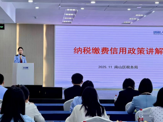 在当前市场竞争加剧、税收监管趋严的背景下,良好的纳税信用已成为企业重要的无形资产,关乎企业在融资、招投标等多方面的核心竞争力。随后,南山区税务局的业务骨干带来了“纳税缴费信用政策专题宣讲”。深入讲解了《纳税缴费信用管理办法》的核心要点,更明确了信用评价在征管服务中的实践路径,切实降低企业因政策不熟悉导致的信用失分风险。未来也将持续深化纳税缴费信用管理应用,以“信用赋能”推动税收征管质效提升,为企业高质量发展营造更优的税收环境。