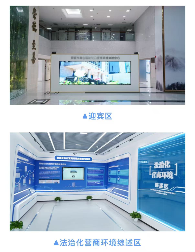 南山区法治化营商环境体验中心以沉浸式体验和精准化服务为主要特色,借助AI人工智能、大数据模型等现代化信息技术,全面展示法治化营商环境的发展,并为企业提供全链条、一体化、点对点的检察法律服务,增强企业依法经营、依法维权意识,助力企业防范法律风险。