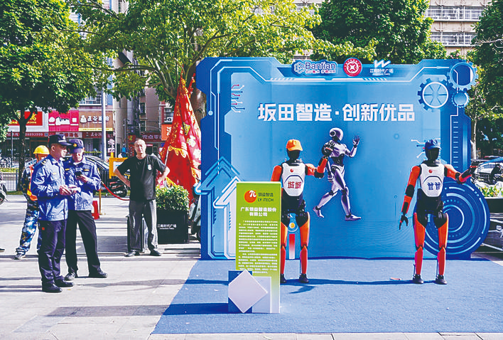 在机器人智能展示区,无人配送、机器狗巡查等功能现场演示,生动展现智慧生活应用。AI赋能区内,升级款“灵心乐府”钢琴机器人进行了灵巧演奏。坂田智造、创新优品、扬帆出海等专区,则分别展示了辖区在高端装备、消费电子、健康科技以及跨境出海等领域的最新成果与实力。