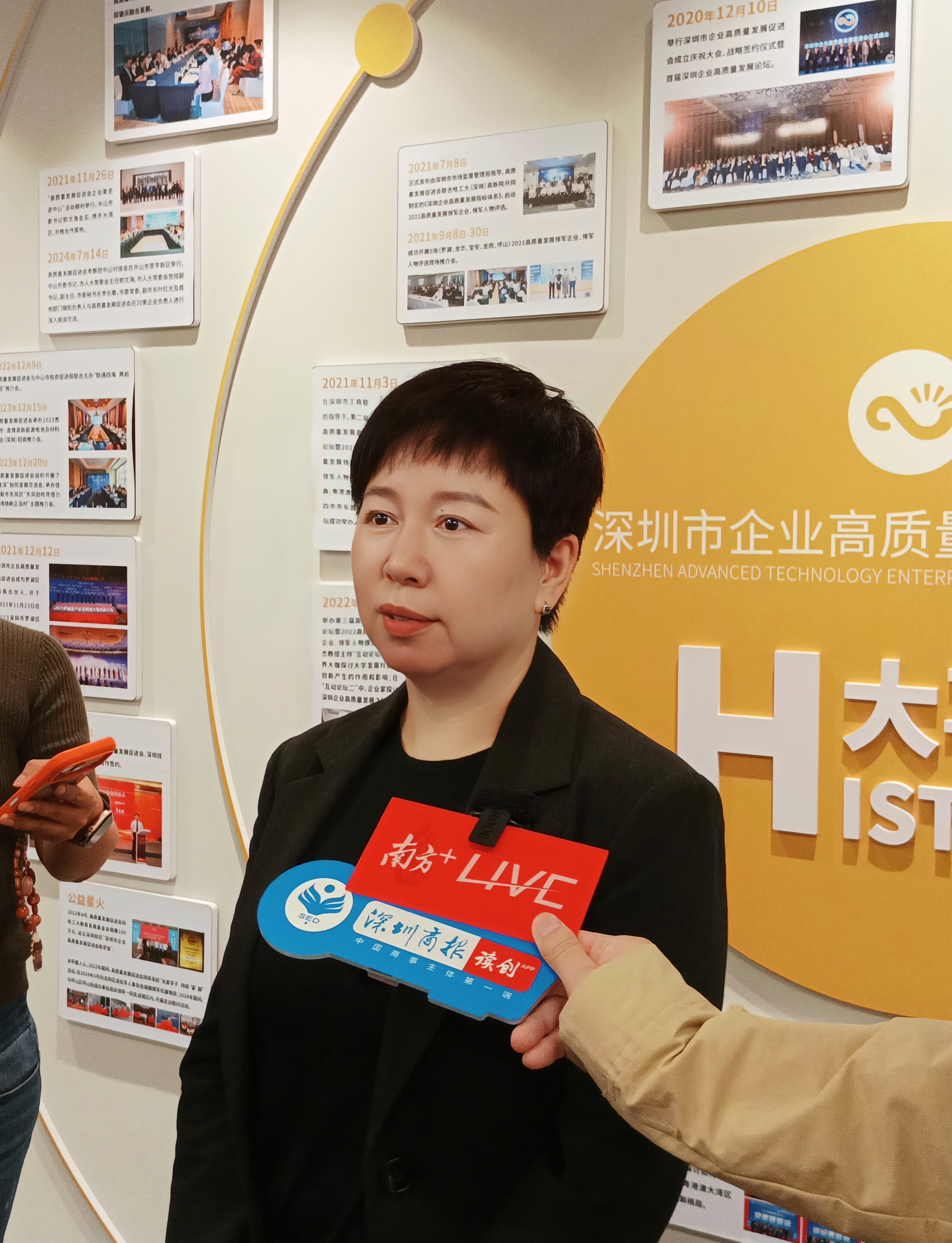 图片说明:深圳市企业高质量发展促进会执行会长邵琪接受采访。 深圳商报·读创客户端首席记者 王海荣 摄