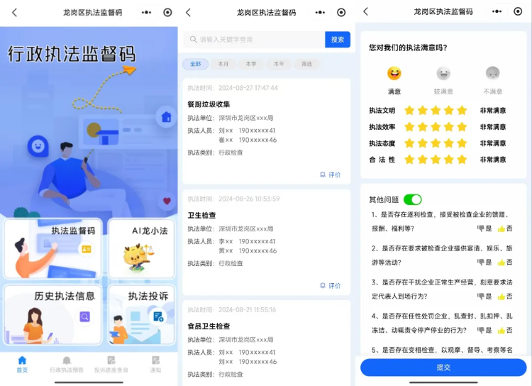 “这相当于给了我们一块‘护身符’。”龙岗区一家国家级专精特新企业负责人向记者展示手机界面,“谁来查、查什么,手机上一目了然。如果短期内同类型检查又来一次,系统会自动预警,我们还可以直接进行评价和投诉。”