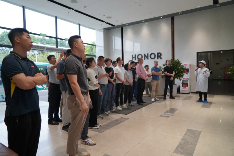 在深圳荣耀智能机器有限公司,作为国家智能手机行业“智能制造示范工厂”,其75%工序自动化、超4成自主研发设备、28.5秒产出一台手机的智能制造水平让企业家们印象深刻。大家实地观摩了magic8的产线,从PCB到包装出库,自动化生产率85%,为制造业企业数智化改造提供了直观且宝贵的参考。