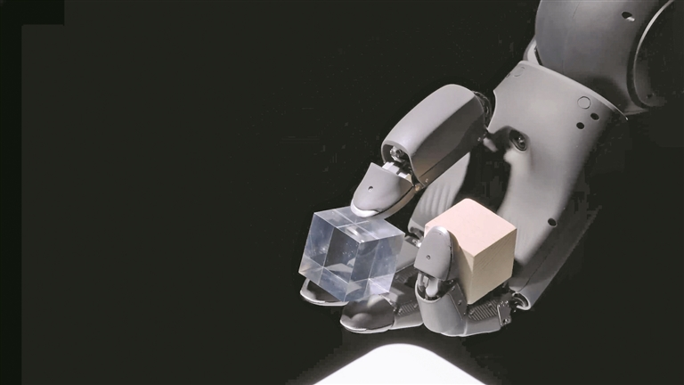 帕西尼感知科技的机器人灵巧手能实现灵巧抓取与精细操作功能。 深圳特区报记者 苗威摄