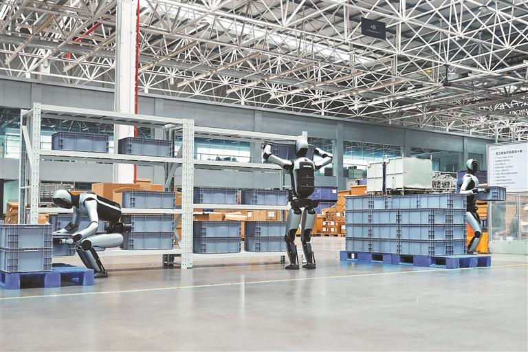 优必选工业人形机器人在智慧工厂内执行制造任务。