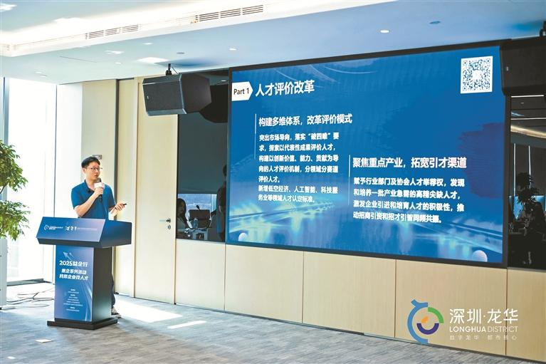 “我帮企业找人才”活动上,工作人员介绍龙华区人才政策。