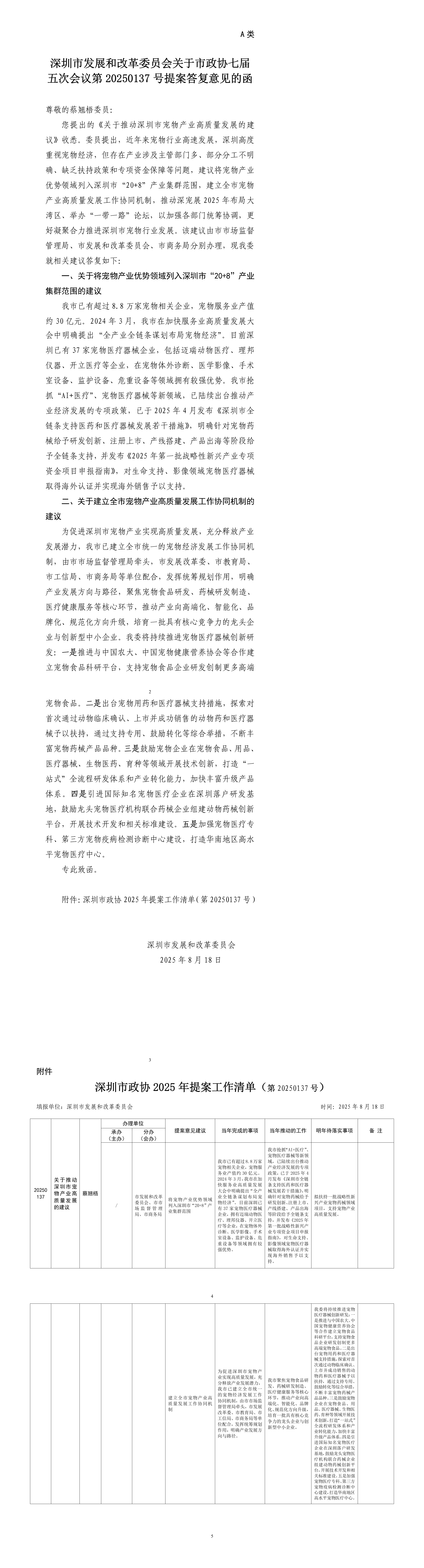 深圳市发展和改革委员会关于市政协七届五次会议第20250137号提案答复意见的函